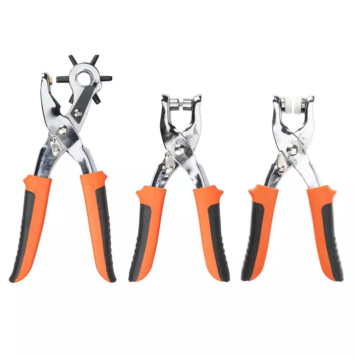 Kätevä 3-osainen rei’itys- ja puristinsarja on täydellinen valinta niin käsityöharrastajille kuin ammattilaisille, jotka työskentelevät nahan, kankaiden, vinyylin tai muovin kanssa. Monipuolinen setti sisältää revolverimallin rei’ityspihdit, puristeniittipihdit ja nepparipihdit - sekä runsaasti neppareita ja niittejä heti käytettäväksi.