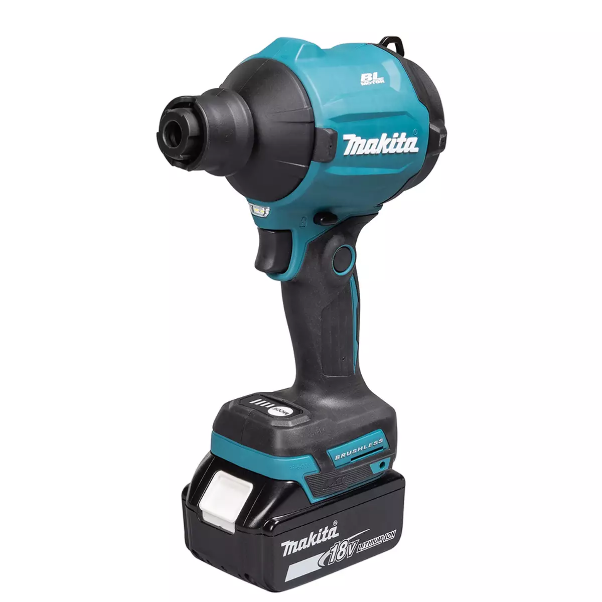 Akkupuhaltimen mukana toimitetaan 2 kpl kantohihnaa, 2 kpl suuttimia pyöreä ja litteä, ilmanohjainsuutin, puhallussuppilo ja puhalluslevy. Kätevän puhaltimen maksimi ilmamäärä on jopa 1,1 m³/min. Makita DAS180Z puhallin toimii 18V akulla, akku ja laturi myydään erikseen.