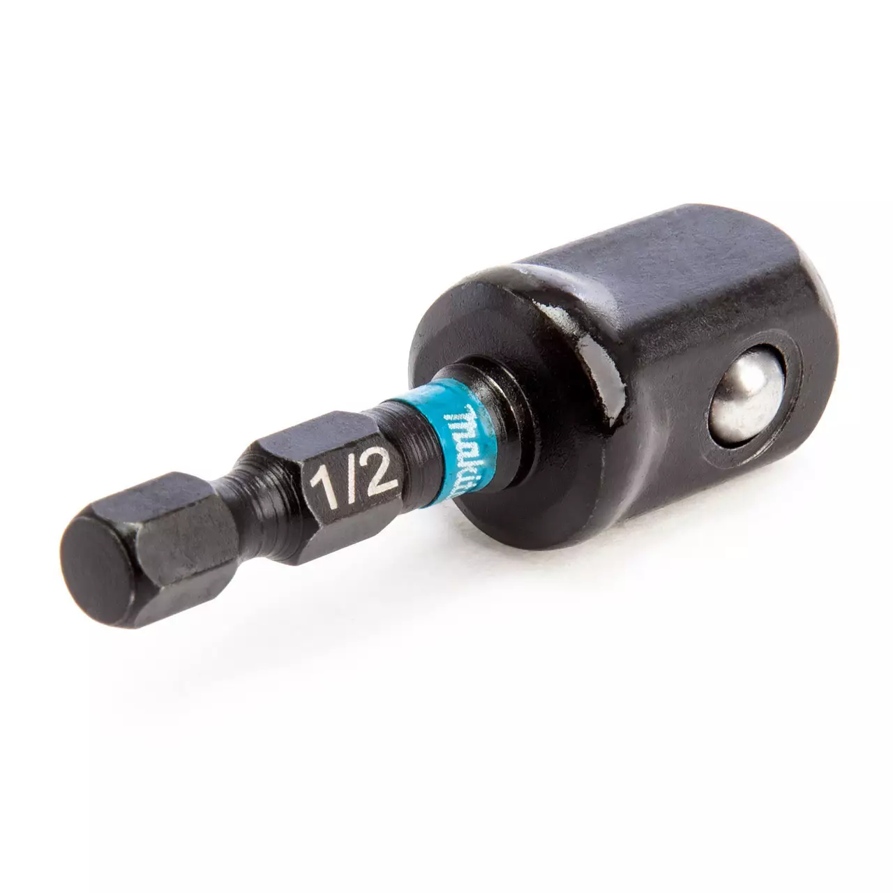 Makitan hylsyadabteri monipuoliseen työskentelyyn. Sovittimen toisessa päässä on 1/4"bits ja toisessa päässä on 1/2". Hylsyadapterissa on musta pinnoite, joka estää ruostumista sekä korroosiota. Kestävä ja pitkäikäinen adapteri on pituudeltaan 50 mm.