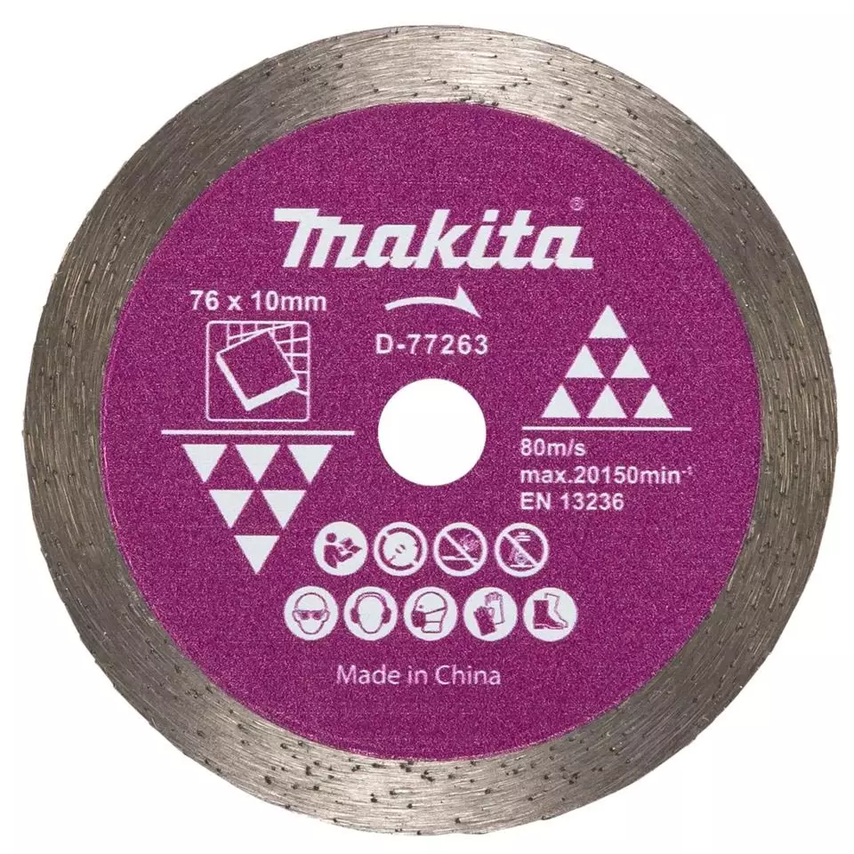 Makita 76 mm timanttikatkaisulaikka on suunniteltu erityisesti laatoituksen tarkkaan ja siruttomaan leikkaamiseen. Jatkuvakehäinen rakenne takaa tasaisen leikkuureunan kovillakin pinnoilla, kuten posliinilla, keraamisilla laatoilla ja luonnonkivellä.