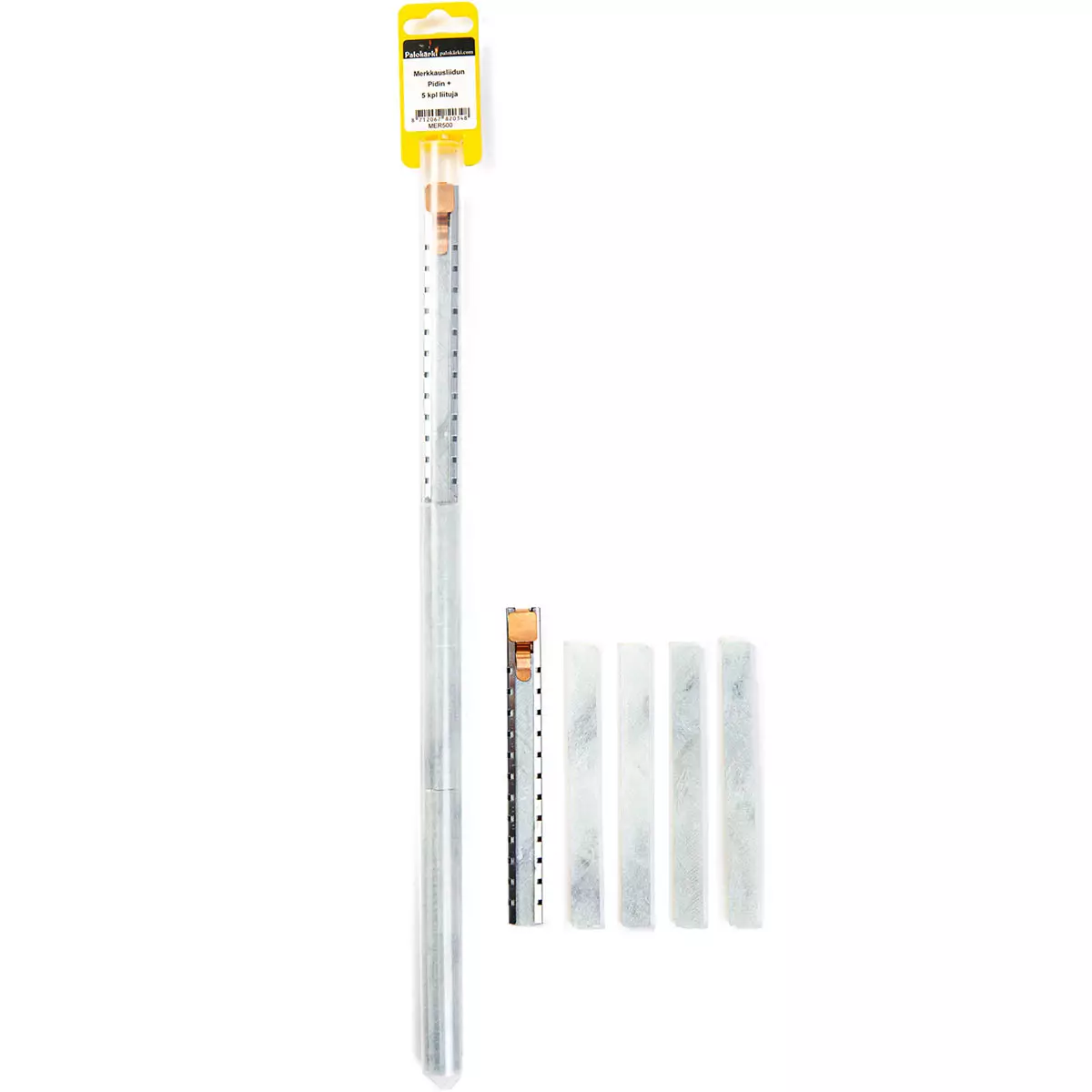 Merkkausliidun pidin ja 5 kpl liituja. Kaikenlaiseen teolliseen merkitsemiseen. Liidun koko 13x5x128mm