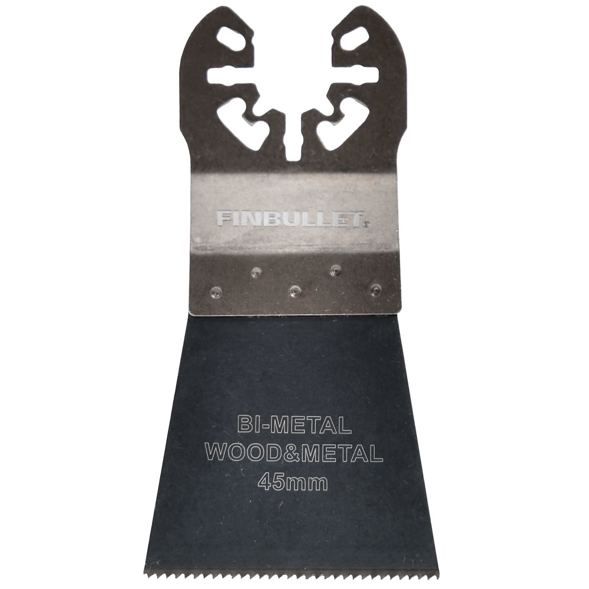 Puun, metallin ja muovin työstämiseen soveltuva monitoimikoneen Bi-Metal terä. Monitoimikoneen terä soveltuu erilaisten materiaalien työstämiseen, kuten upotussahauksiin tai naulojen ja ruuvien katkaisuun. Metalliterä ei sovellu rautametallien, kuten alumiinin, sinkin, kuparin tai lyijyn työstöön. Kestävästä Bi-metalliseoksesta valmistetun monitoimikoneen terän leveys on 45 mm ja terän syvyys 38 mm. Monitoimikoneen metalli- ja puuterä sopii useisiin eri merkkisiin monitoimikoneisiin, kuten AEG, Black & Decker, Bosch, Einhell, Craftsman, Dremel, Mastercraft ja Milwaukee.