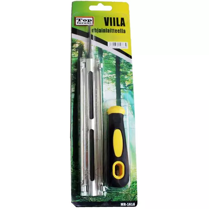 Moottorisahan viila ja ohjainlaite. Moottorisahan teräketjun teroittamiseen tarkoitettu viila on halkaisijaltaan 4,8 mm. Mukana tuleva viilanohjain helpottaa teräketjun teroittamista. Viilaohjain on helppo- ja mukavakäyttöinen ja ergonomisesti muotoiltu kädensija varmistaa tukevan työotteen.