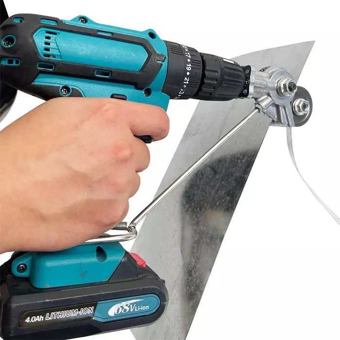 Peltisaksi porakoneeseen on erinomainen työkalu, joka mahdollistaa pienen kääntösäteen ansiosta erittäin tarkat leikkaukset myös monimutkaisiin kohteisiin, kuten läpivienteihin, peltikulmiin ja epämääräisiin muotoihin. Täydellinen työkalu kaikentyyppisiin peltitöihin.