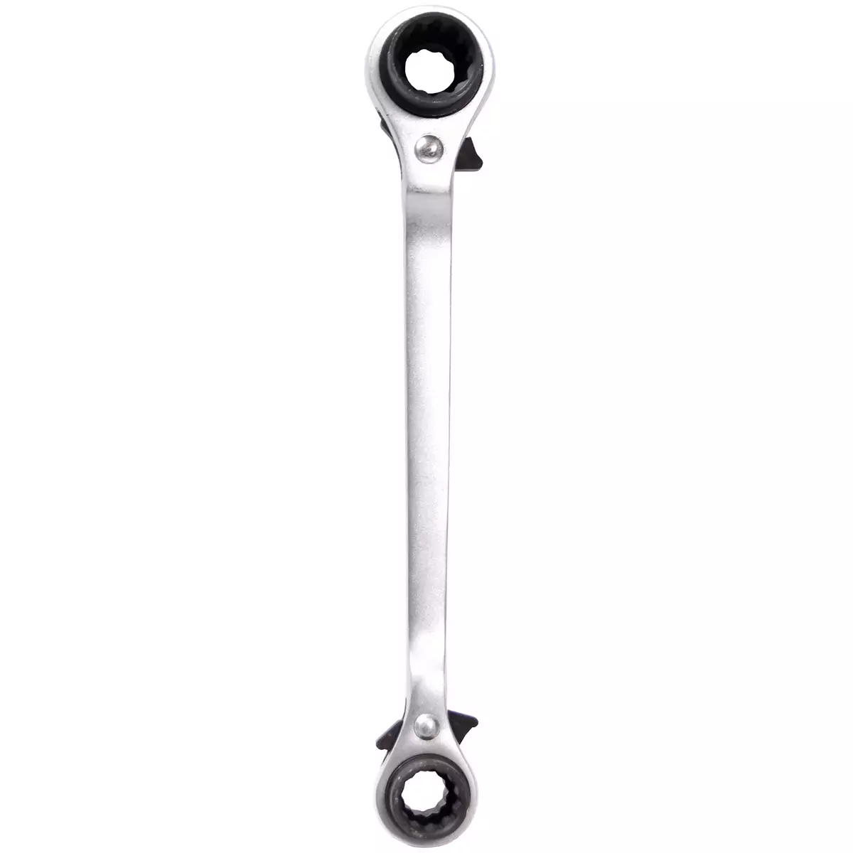 Räikkäavain lenkkipäällä, jossa yhdistettynä neljä yleistä avainkokoa samaan työkaluun. Soveltuu kiristys- ja avaustöihin ahtaissa tiloissa räikkämekanismin ansiosta.