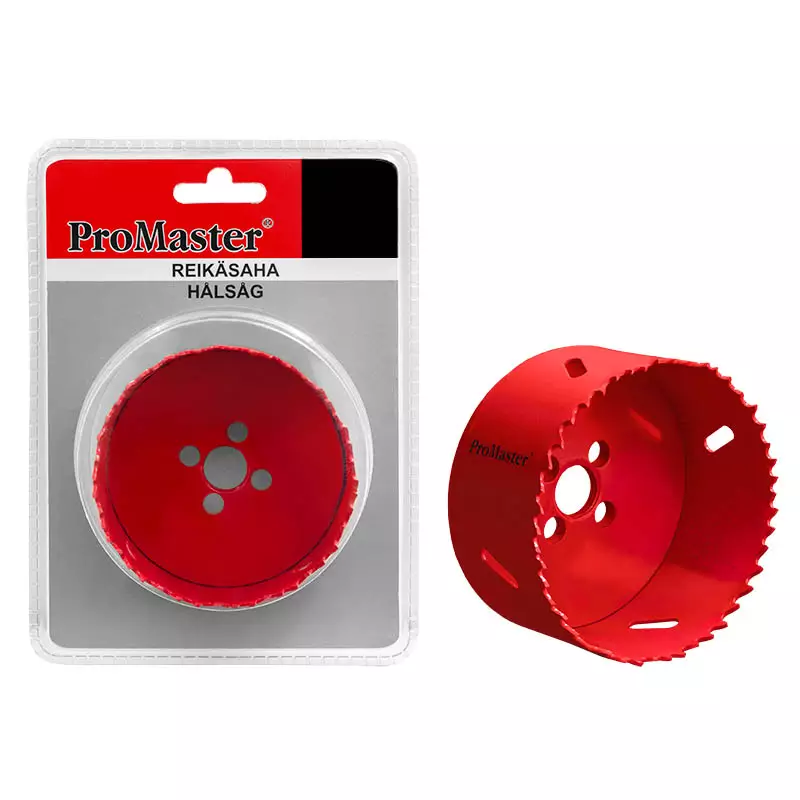 Reikäsaha ProMaster on halkaisijaltaan 76mm - 3" ja maksimi leikkaussyvyys on 38mm. Reikäsahaa voidaan käyttää käsi- ja pylväsporakoneissa.