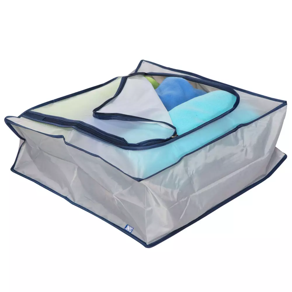 Läpinäkyvän kannen ikkunan ansiosta näet yhdellä vilkaisulla, mitä pussissa on, eikä kaikkea tarvitse avata jos käytössäsi on useampi säilytyspussi.