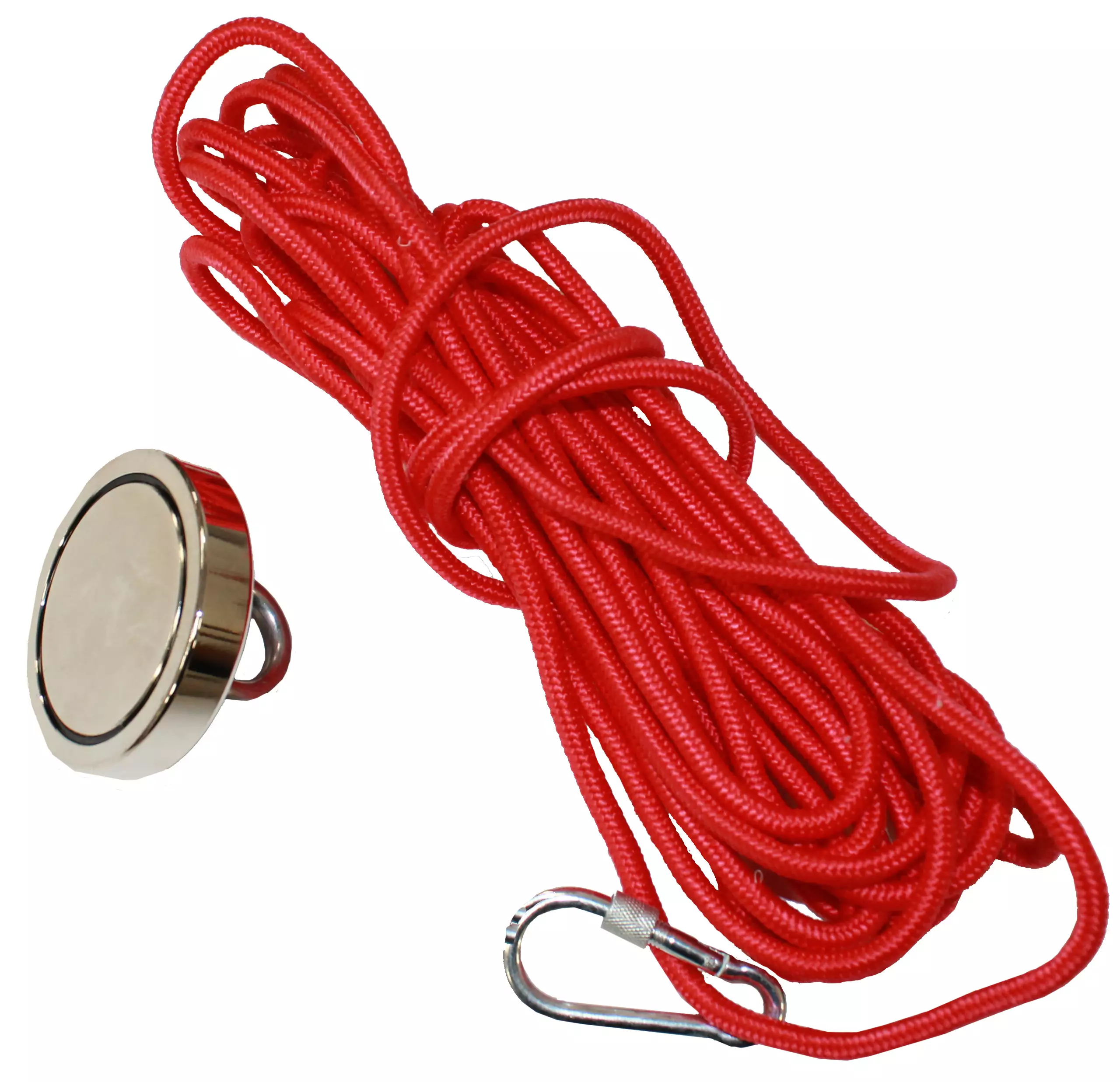 Todella vahva supermagneetti sopii täydellisesti magneettikalastukseen, aarteen etsintään sekä muihin nostotöihin, joissa on hankala nostaa esimerkiksi ahtaista paikoista metallisia tarvikkeita ja työkaluja. Magneetin nostokapasiteetti on jopa 300kg, joten sillä saa nostettua vesistöstä ja muista paikoista mm. hukkuneet pölkupyörät, työkalut ja muut aarteet.