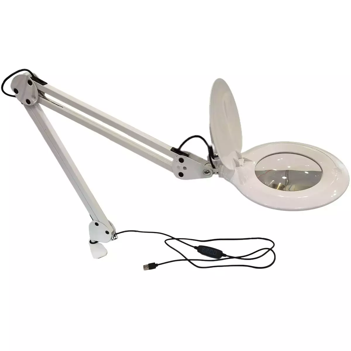 Suurennuslasivalaisin LED USB valkoinen helpottaa tarkkuutta vaativaa työskentelyä, kun pienet yksityiskohdat pitää nähdä selkeästi ja valaistus halutaan suoraan kohteeseen. Pöytäkiinnitys ja säädettävä varsi pitävät suurennuslasin tukevasti paikallaan ja auttavat suuntaamaan valon juuri oikeaan kohtaan.