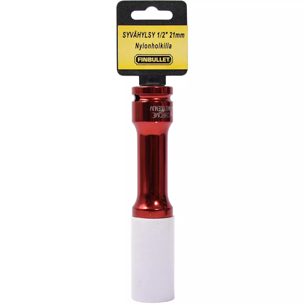 Syväpainehylsy 1/2" koossa 21 mm pitkällä 150 mm rungolla. Tarkoitettu iskeville työkaluille ja syvällä olevien kiinnikkeiden käsittelyyn.