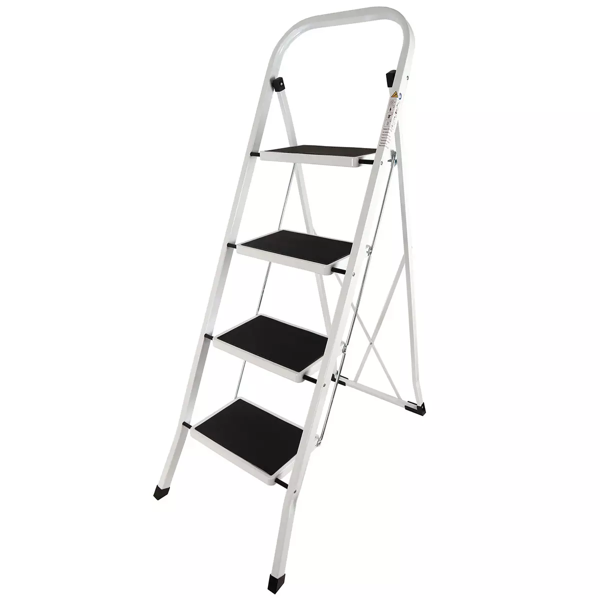 Kokoontaittuvat tikkaat helpottavat erilaisten rakennus- ja kotitöiden tekemistä, jossa kohteeseen ei yletytä ilman apuvälinettä. Neljällä askelmalla varustettu porrasjakkara on tukeva ja laadukas koroke, jonka avulla esimerkiski kattoon tehtävien asennuksien tai verhojen kiinnitys onnistuu helposti ilman kurottelua. Työmaalle ja kotiin ihanteelliset tikkaat on valmistettu pulverimaalatusta teräksestä. Turvalukituksella varustettujen tikkaiden askelmissa on liukuesteenä TPR-pehmikematto, jonka ansiosta tikkaille on turvallisempaa kiivetä erilaisissa olosuhteissa.