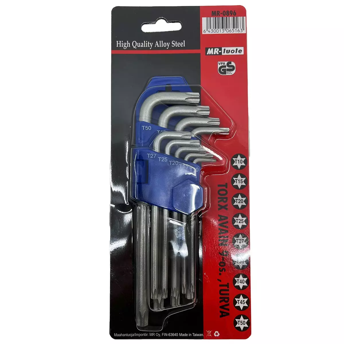 Korkealaatuinen 9-osainen torxavainsarjana. Torx-avaimet ovat erinomainen valinta monipuoliseen käyttöön, niin kotiin, autoon, moottoripyörään kuin verstaskäyttöönkin. Torx-avainsarja sisältää kaikki yleisimmin tarvittavat koot, T10, T15, T20, T25, T27, T30, T40, T45 ja T50. Troxavaimet ovat valmistettu laadukkaasta teräseoksesta.