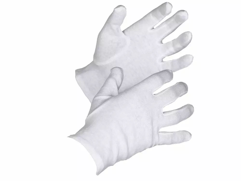 Ohut valkoinen puuvilla-aluskäsine. Istutettu peukalo ja sormissa kiilapalat takaavat hyvän istuvuuden.