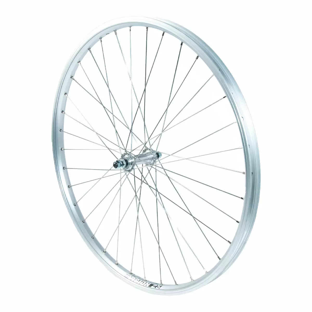 Laadukas 26-tuumainen Unionin etupyörä Aino/Oiva -pyöriin ja maitokärryihin. Renkaassa on jarrupinta ja napamutterikiinnitys. Kestävästä alumiinista valmistetussa vanteessa on 36 reikää, joihin on kiinnitetty 2 mm paksut Sapim Leader -pinnat. Vanne on hopeanvärinen.