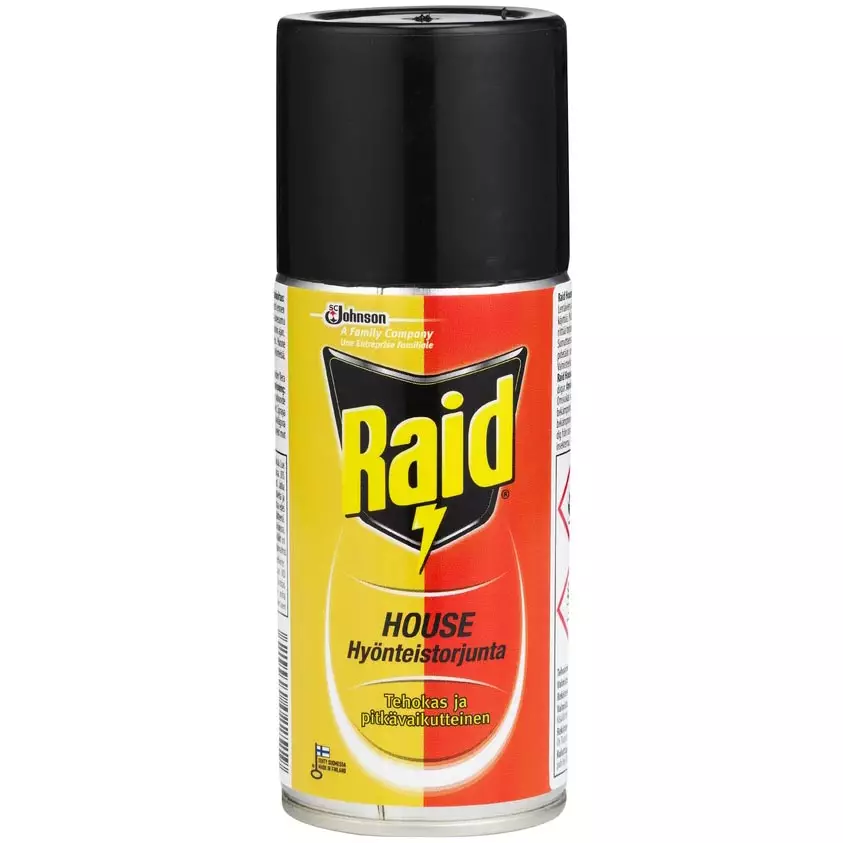 Raid House aerosoli on luotettava ratkaisu kotiin, kun halutaan torjua nopeasti ja tehokkaasti lentäviä hyönteisiä. Aerosoli tehoaa välittömästi ja tarjoaa samalla pitkäkestoisen suojan käsitellyillä pinnoilla, joten sen vaikutus jatkuu vielä käytön jälkeenkin.