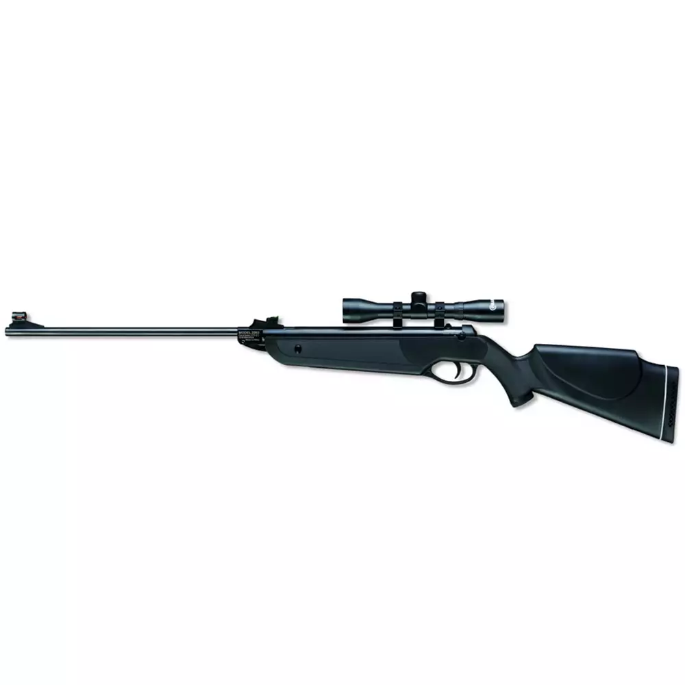 Marksman 2063 on perustason 4,5mm ilmakivääri taittopiippuisella jousimäntätoiminnolla - kevyt 2,85 kg rakenne, synteettinen tukki korotetulla poskituella ja 4x32mm kiikaritähtäin jalustoilla toimituksessa mukana. Hyvä valinta aloittelijalle ja harjoittelukäyttöön.