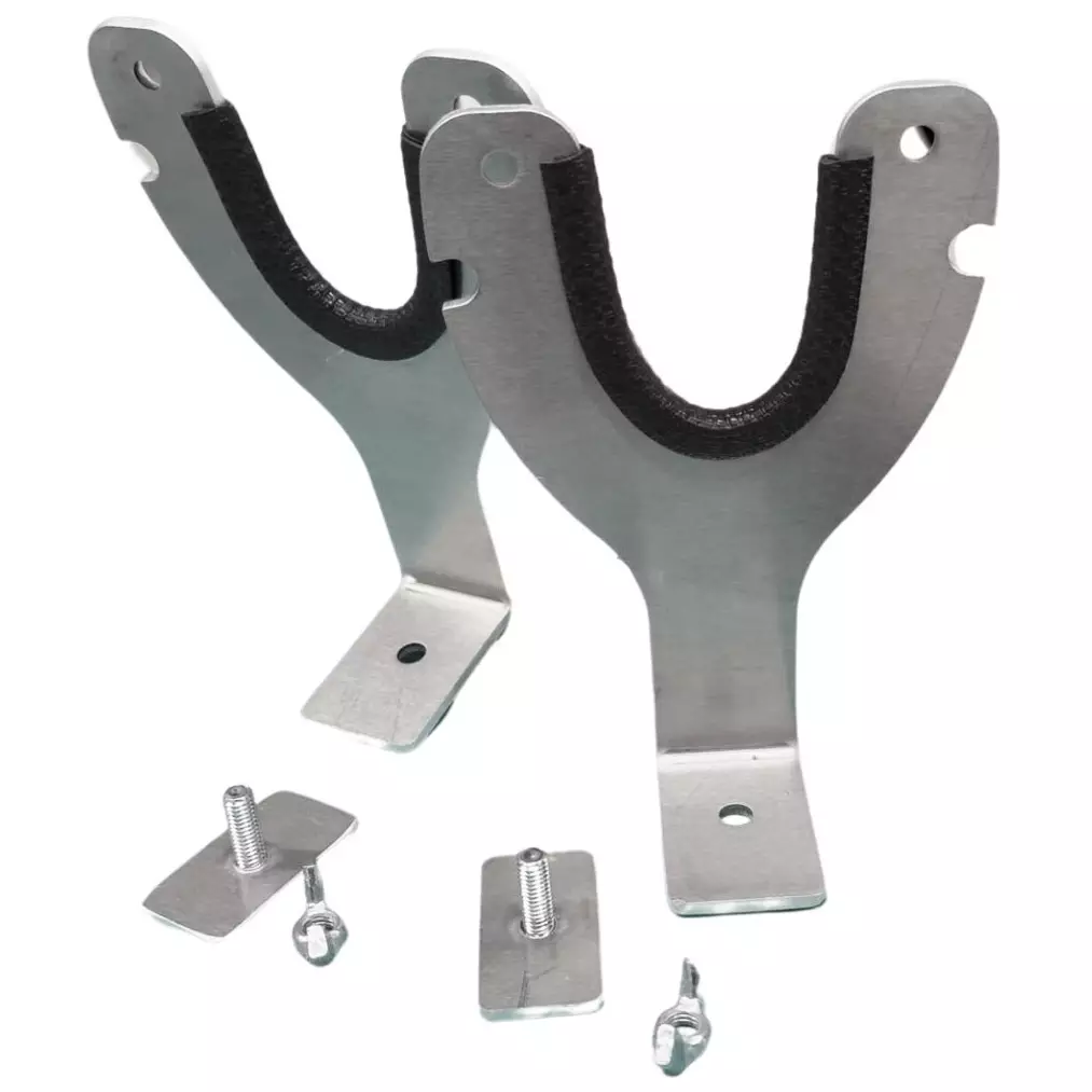 Kaira on helppo nostaa pois ja laittaa takaisin telineeseen siirtymien välillä, mikä nopeuttaa pilkkipaikkojen vaihtamista. Lisäturvaa pitkillä matkoilla saat kiinnitysnarulla tai kuminauhalla, jotka voi pujottaa telineen sivukoloihin.