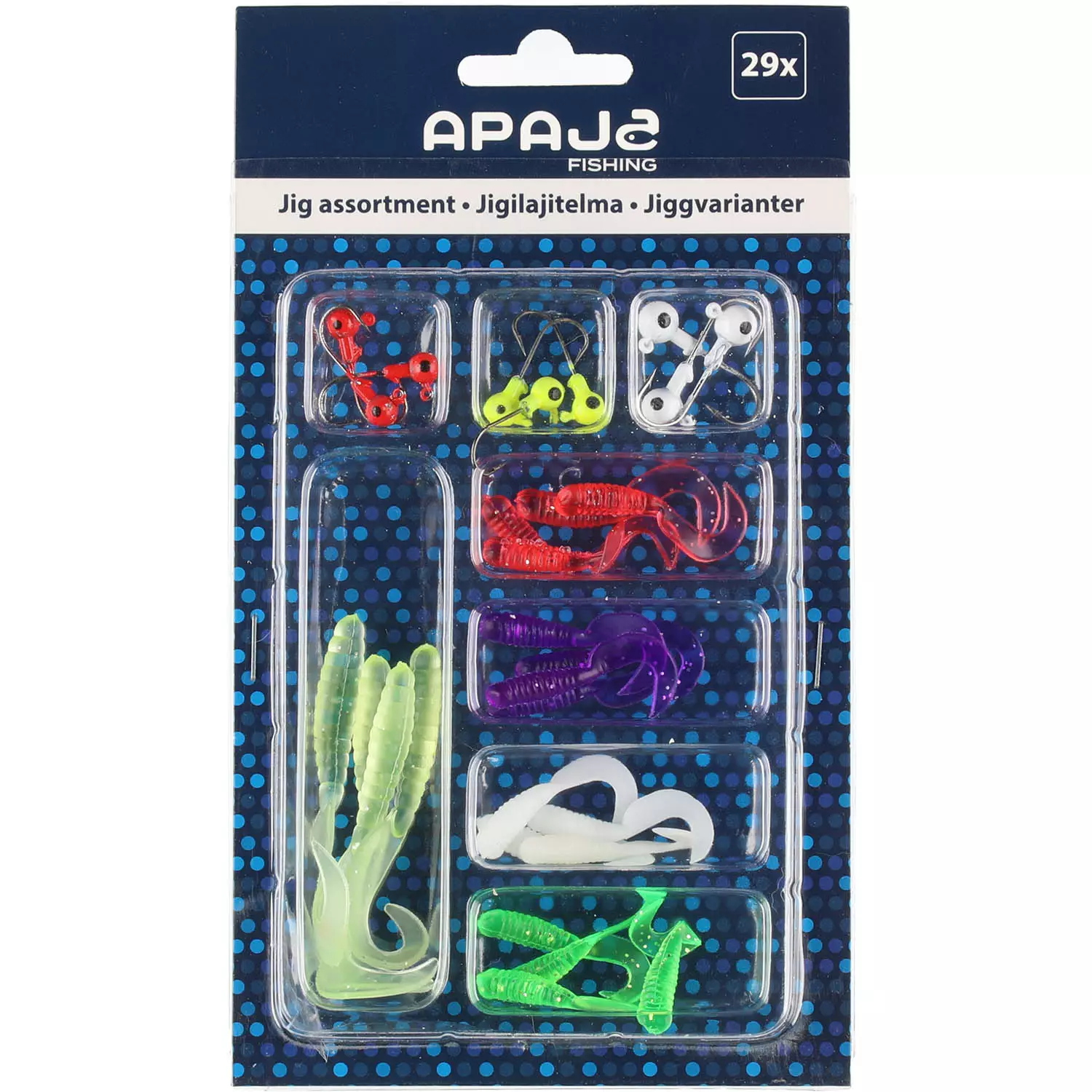Kattava, värikäs jigilajitelma kalojen narraukseen. Pakkauksessa 29kpl jigejä ja koukkuja.