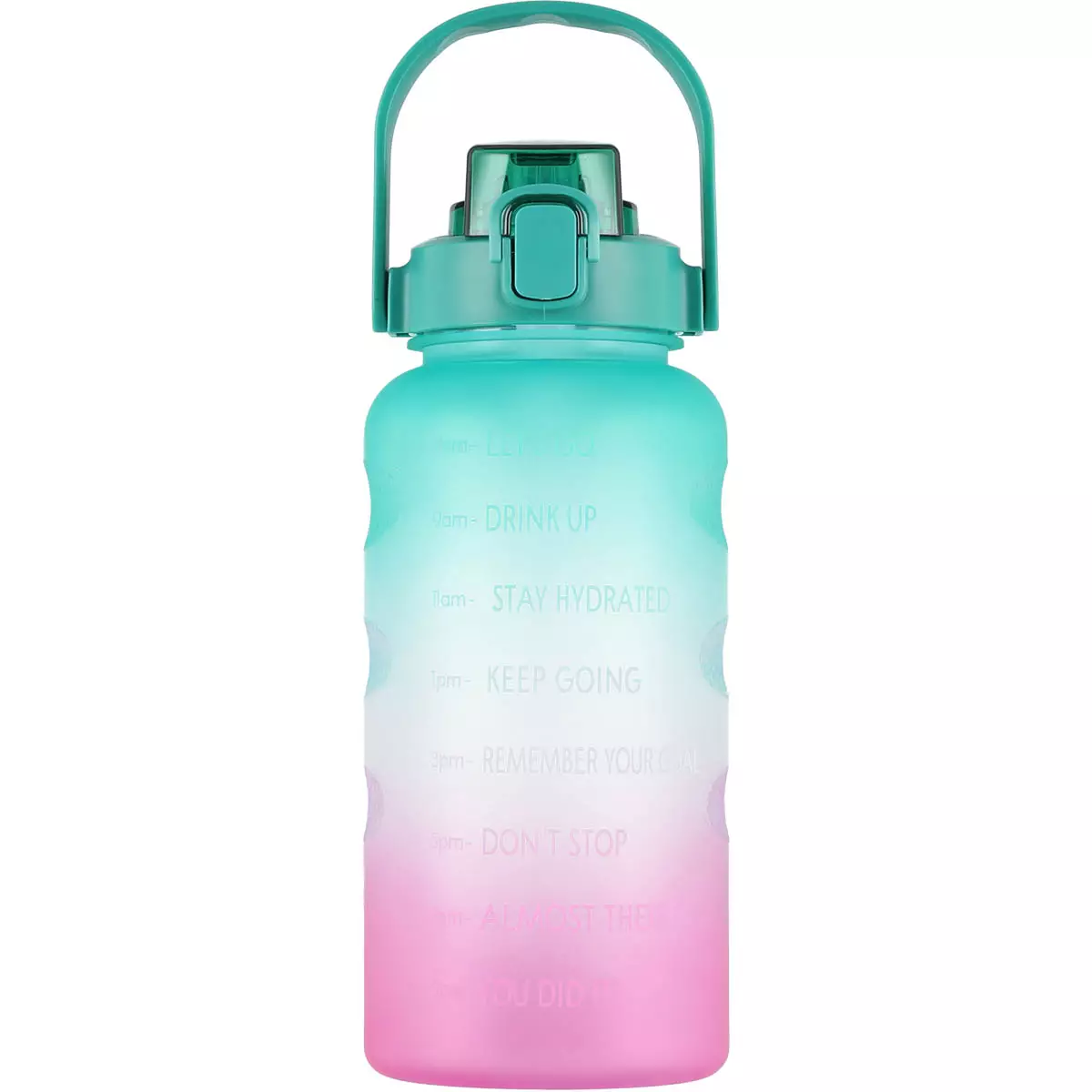 Iso kahden litran juomapullo kovaan treenaamiseen ja vapaa-aikaan. Riittävän tilava vesipullo tekee päivittäisestä veden juonnista helppoa. Turkoosi-pinkki väri.