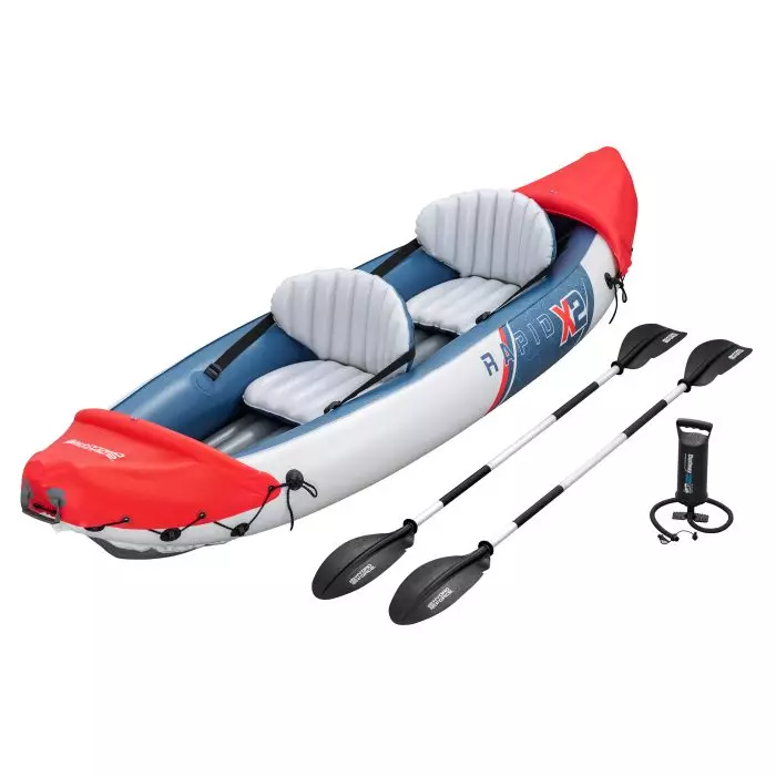Bestway® Hydro-Force® Rapid™ X2 on huippuluokan kaksipaikkainen kajakki, joka tarjoaa täydellisen yhdistelmän kestävyyttä, vakautta ja mukavuutta. Ilmalla täytettävä kajakki on suunniteltu niin jokiseikkailuihin, järvimatkoille kuin rauhallisiin melontaretkiin.