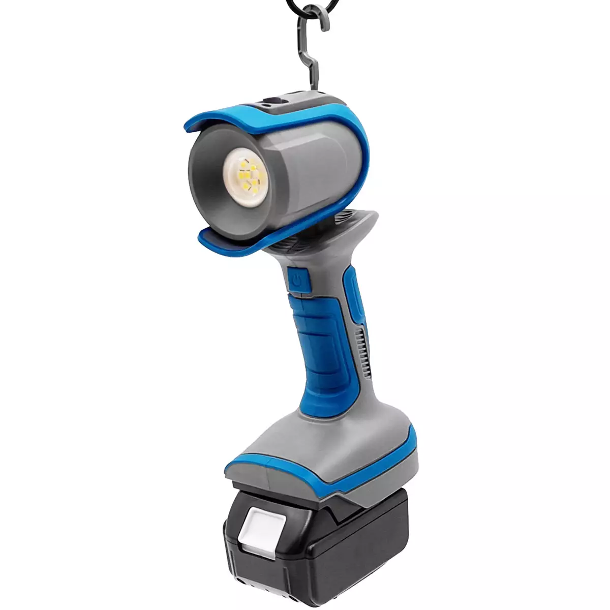 Uudenajan innovatiivinen akkutyövalo, joka on yhteensopiva yleisimpien 18V työkaluvalmistajien akkujen kanssa. Tätä käsivalaisinta voidaan käyttää esimerkiksi Makitan LXT -akuilla tai DeWalt, Milwaukee, Bosch ja Jonköping työkoneakuilla. Sama akku sopii siis esimerkiksi porakoneeseen ja käsikäyttöiseen työvalaisimeen. Mukana toimitetaan adapteri eri akuille. Pakkaus sisältää valaisimen rungon, ei sisällä akkua tai akkulaturia.