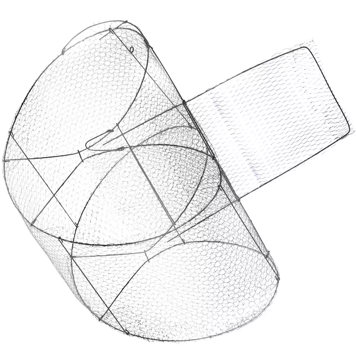 Perinteinen itsekasattava ja sinkitty katiska ohjainaidalla. Pitkäikäisessä katiskassa on hyvinpyytävä muotoilu.