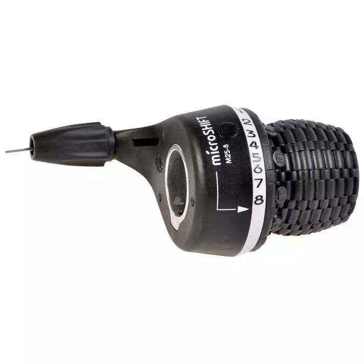 Laadukas Microshift kiertovaihdekahva 8-vaihteiseen vaihteistoon. Shimano- yhteensopiva vaihdevipu sisältää vaijerin.
