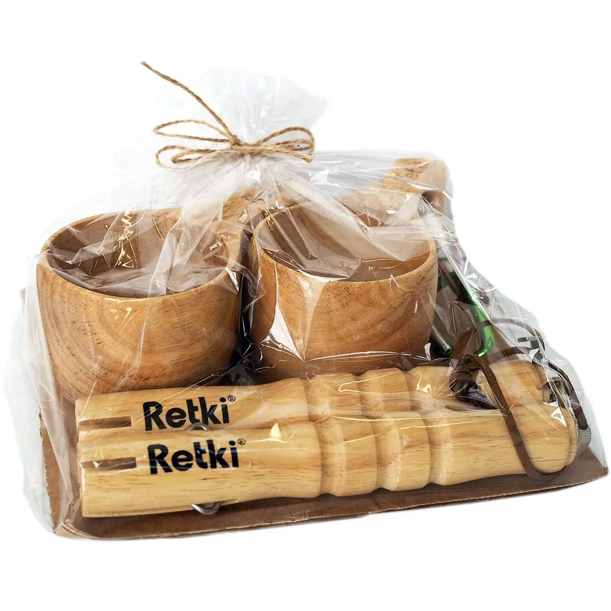 Laadukkaat Retki tammikuksat saavat nokipannukahvit tai termarikahvit maistumaan entistäkin paremmalta. Teleskooppivartinen Retki-makkaratikku puolestaan palvelee retkeilyssä vuodesta toiseen ja se on myös valmistettu laadukkaasta tammesta. Makkaratikku pakkautuu pieneen tilaan, jolloin kuljettaminen on helppoa myös pidemmillä retkillä. Myös kuksat saa kiinnitettyä pikalukolla esimerkiksi vyölenkkiin kiinni.