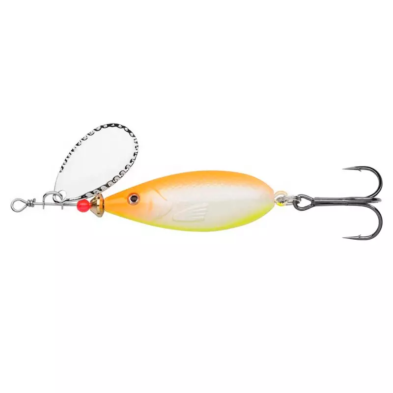 Houkuttelevan värinen viehe tasaisella ja pyörimättömällä uinnilla harjukselle, taimenelle sekä ahvenelle.