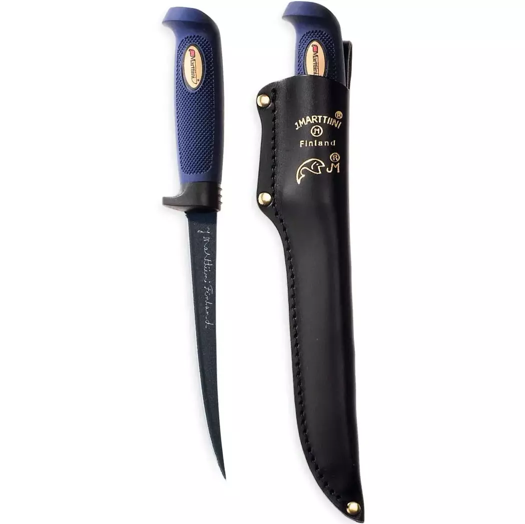 Marttiini Martef Filetti 15 on pinnoitettu filerointiveitsi, jonka terä leikkaa ahnaasti ja lähes kitkattomasti, jolloin lopputuloksena on ensiluokkaiset kalafileet. Martef-pinnoite tuo jouhevuutta paitsi filerointiin, myös terän puhdistamiseen – pelkkä huuhtaisu riittää. Tyylikkäässä fileointiveitsessä on karhennettu, tummansininen kumikahva, joka on viimeistelty sormisuojahelalla.