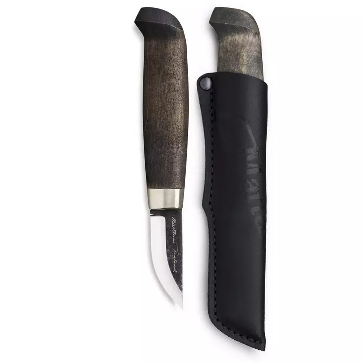 Marttiini puukko Näpsä on lyhytteräinen puukko, joka on erittäin kätevä vuolemiseen ja askarteluun. Näpsä puukossa on kuusisenttinen hiiliteräksestä valmistettu terä, joka on helppo pitää myös terävänä. Marttiini Näpsä puukon kahva on saanut vaikutteita Marttiinin perinteisestä Ilve-puukosta. Puukossa on vahattu koivukahva, joka takaa pitävän otteen. Tyylikäs musta nahkatuppi Marttiini-painatuksella viimeistelee puukon.