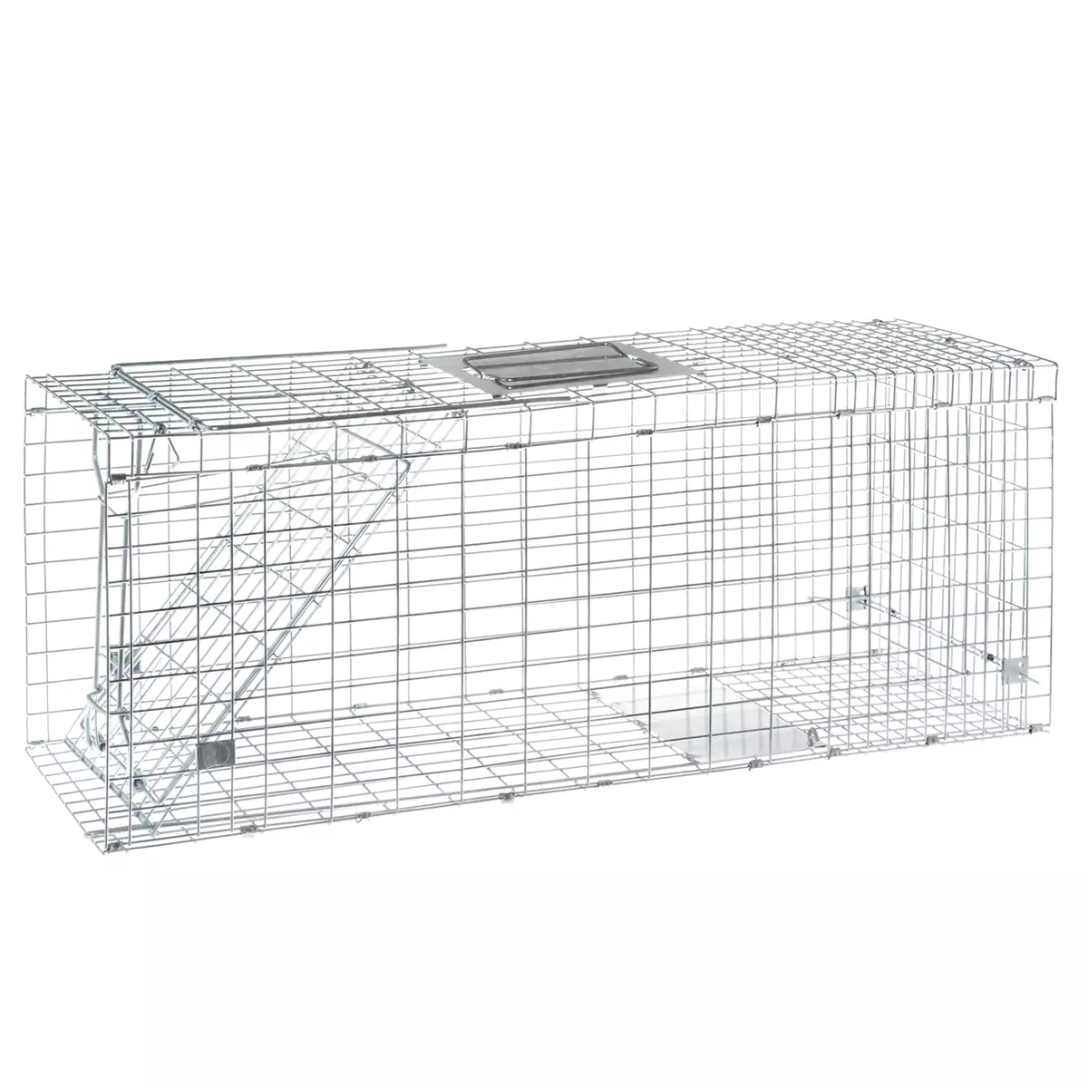 Vahvasta galvanoidusta metallista valmistettu kokoontaittuva pieneläinloukku esimerkiksi minkkine, jänisten tai muiden pienten eläinten pyydystämiseen. Tukeva rakenne, yhden verkkolangan vahvuus 2,5mm.