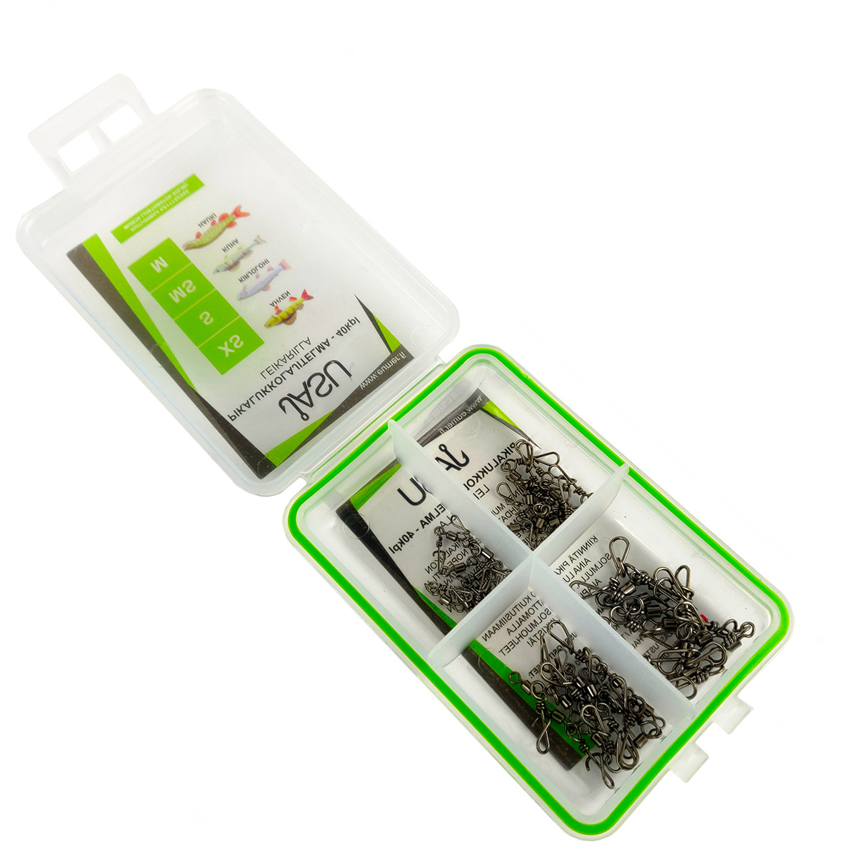 Pikalukkolajitelma, missä 40 kpl pikalukkoja leikarilla. Sisältää sopivia pikalukkoja ahvenelle, kirjolohelle, kuhalle ja hauelle.