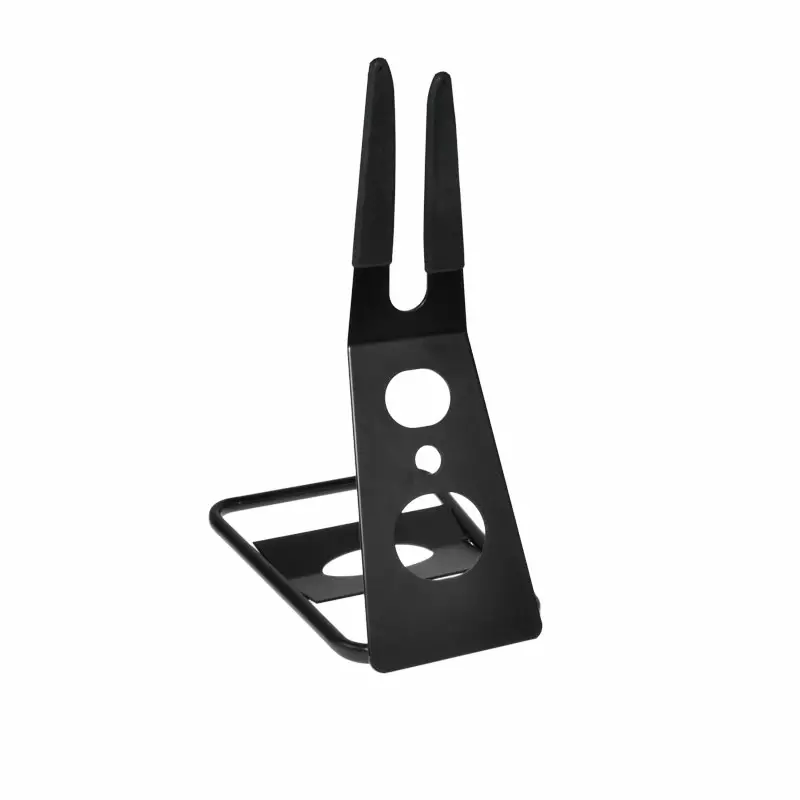 Pyöräteline on yksipuolinen ja siihen sopii useimmat pyörät 16-29 tuumaisiin pyöriin saakka. Esittelyteline on valmistettu kestävästä materiaalista ja se on väriltään musta.