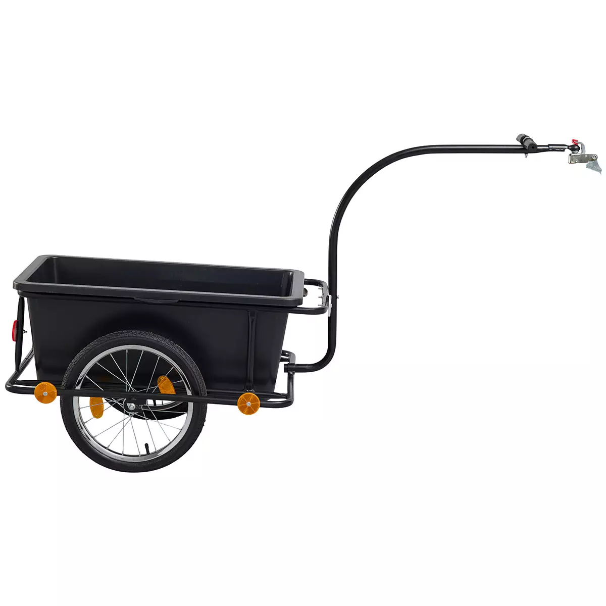 Polkupyörän kärry on valmistettu hyvin liukuvista renkaista, jämäköistä vanteista, teräs rungosta sekä laadukkaista muoviosista joten peräkärryn käyttöikä on todella pitkä.