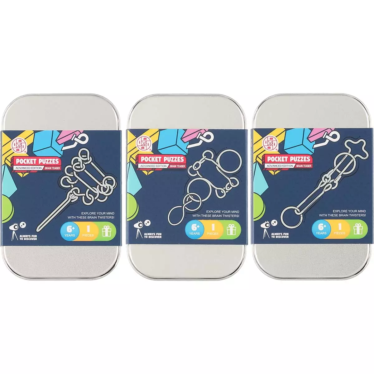 Haastavat metalliset pulmapelit kulkevat kätevästi mukana pienessä rasiassa. Jokainen pulmapeli kehittää loogista ajattelua, ongelmanratkaisutaitoja ja keskittymiskykyä. Täydellinen valinta niin lapsille kuin aikuisille, jotka rakastavat älypelejä ja aivopähkinöitä.