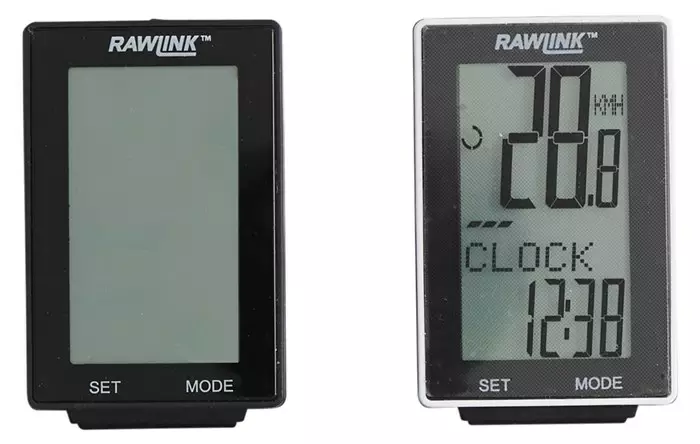Rawlink ajotietokone matkapyöräilijöille ja maastoon. Ajotietokone näyttää tarkasti mm. ajonopeuden, poljetun matkan, kuluneen ajan, nopeuden sekä kalorinkulutuksen. Ajotietokoneen mukana tulee kiinnikkeet, joilla laitteen saa helposti kiinni pyörään.