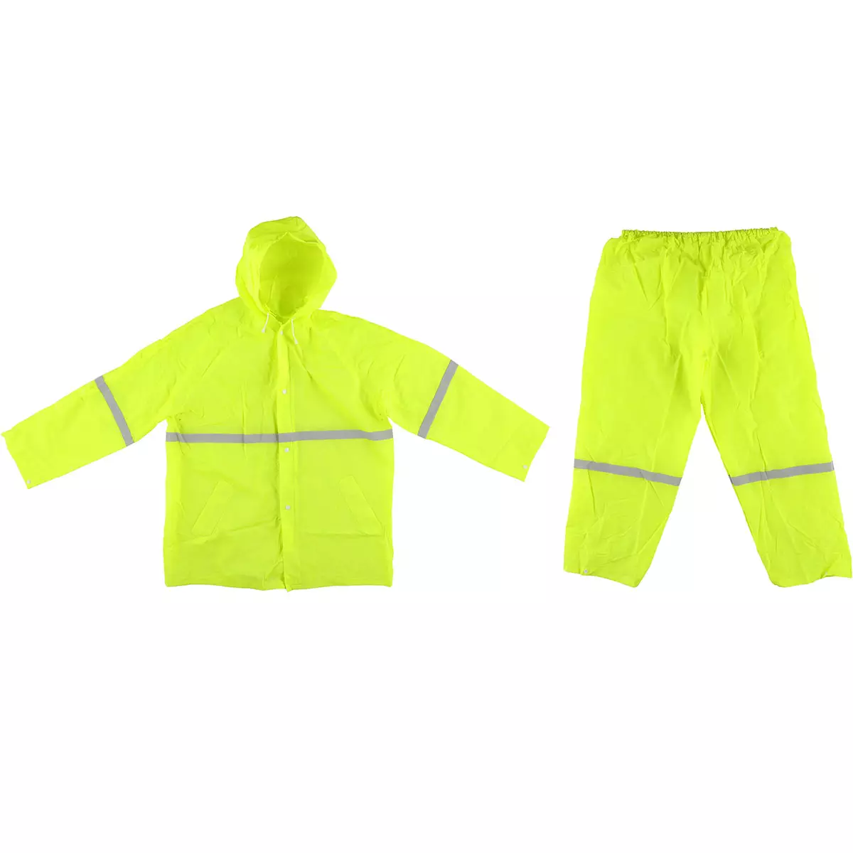 - Sisältö: Sadehousut + huputon sadetakki heijastavilla raidoilla