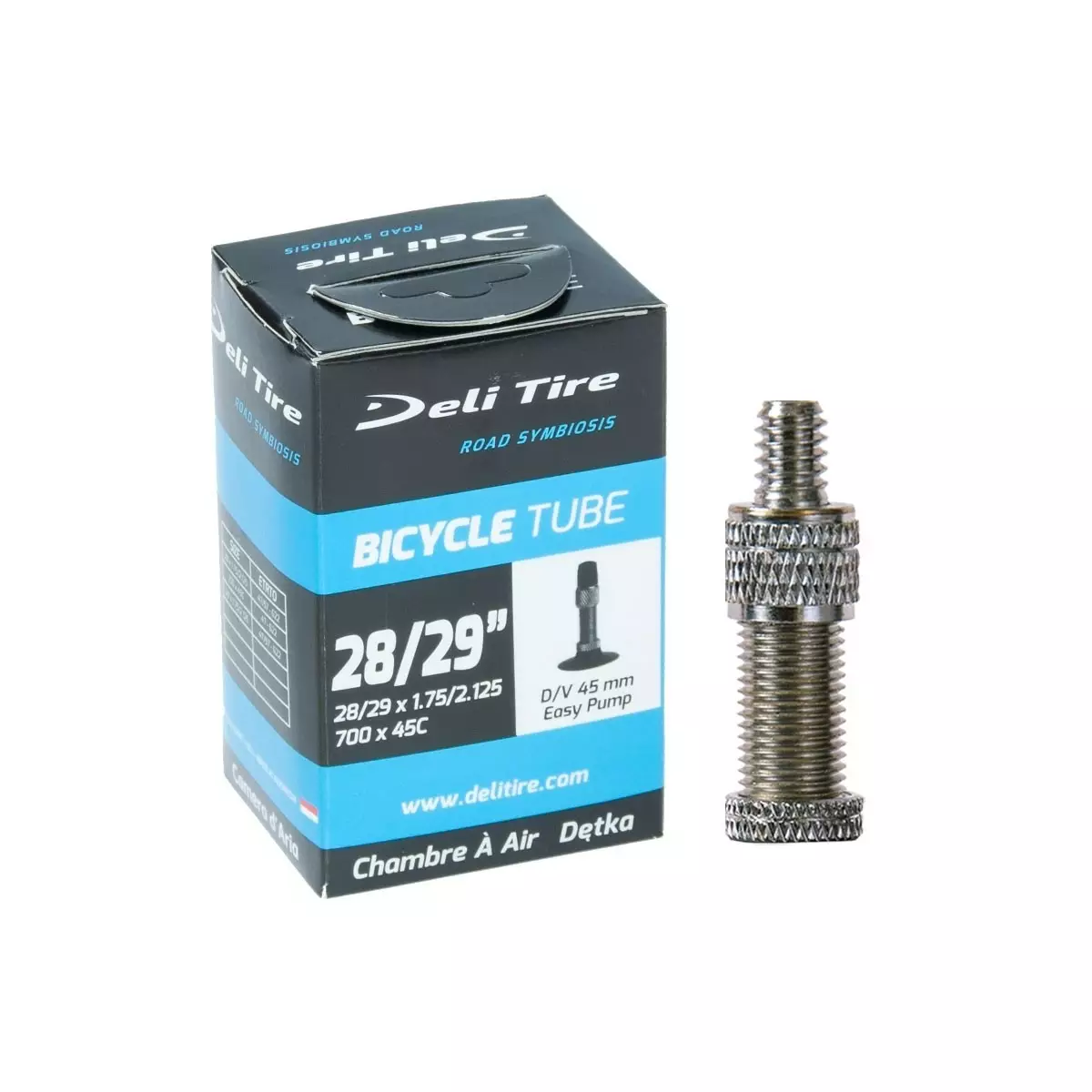 45mm D/V pikaventtiilillä varustettu laadukas Delin sisäkumi 28" polkupyörän renkaaseen. Sisärengas täyttää ETRTO mitoitukset, ja rengas on testattu 24h kestävällä ilmapainetestillä. Näin valmistaja takaa 100% täydellisen suorituskyvyn ja renkaan laadun!