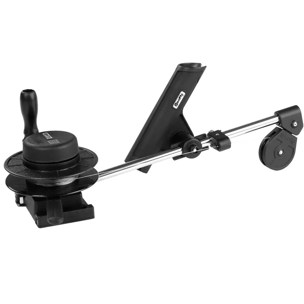 Scotty 5-1050 tarjoaa manuaalisen mutta tehokkaan nostomekanismin, jossa kuula nousee jopa 30 cm jokaista kammen kierrosta kohden. Spray-suojattu mekaaninen syvyysmittari mahdollistaa tarkan vieheen syvyyden säädön.