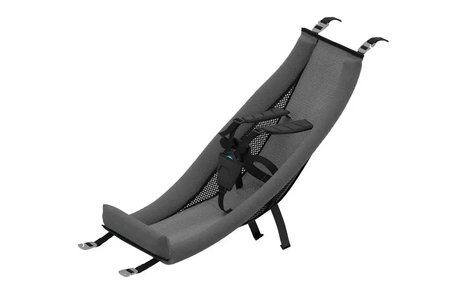 Pehmustettu istuin sivuttaistuella sekä parhaan mahdollisen vakauden antava vauvan istuintuki Thule pyöräkärryihin. Sopii 1-10 kk ikäisille.