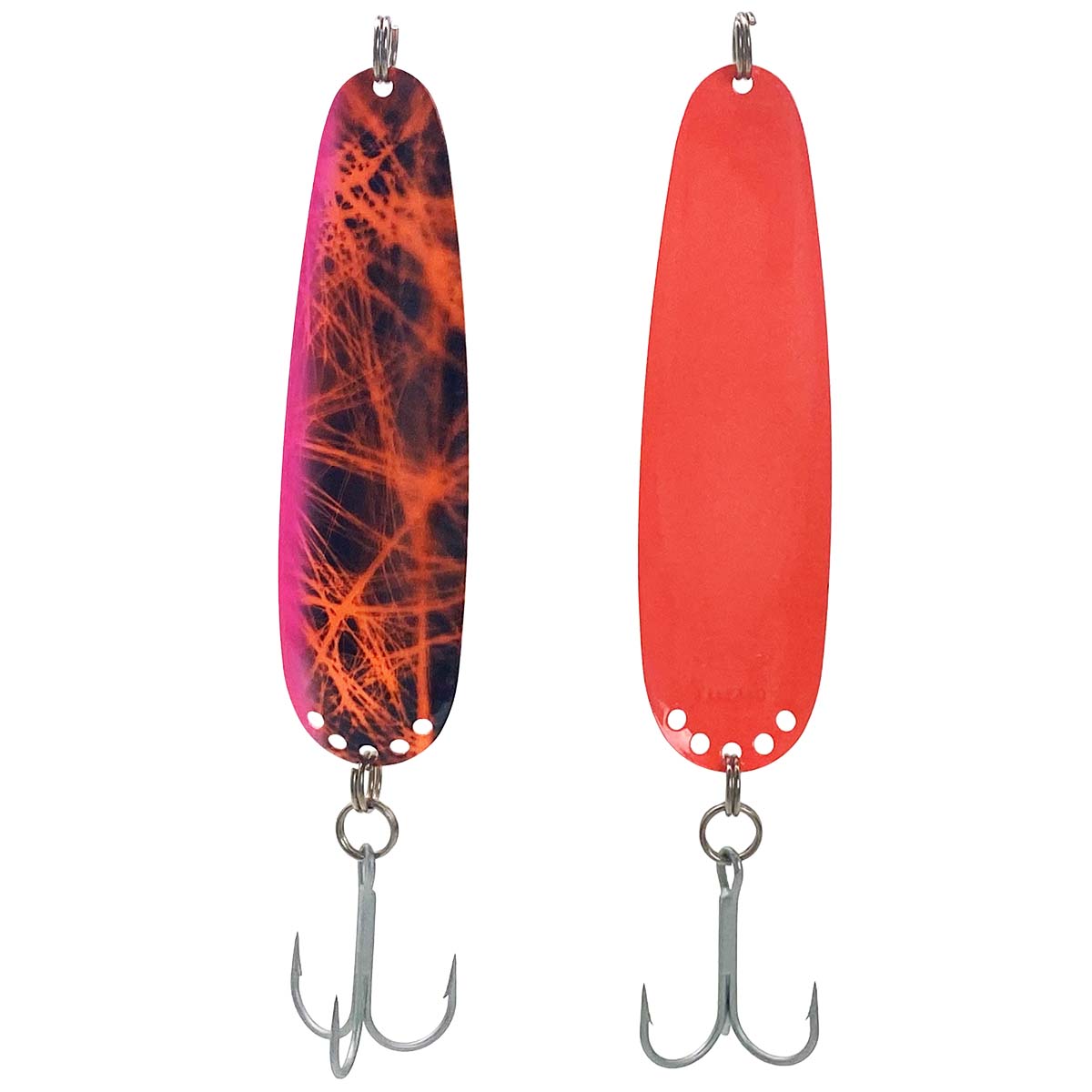 Isotiura on suosittu lusikka mm. lohen moottoriuistelussa. Vuoden 2022 uutuus väri oranssi 601 M, oranssilla taustalla.