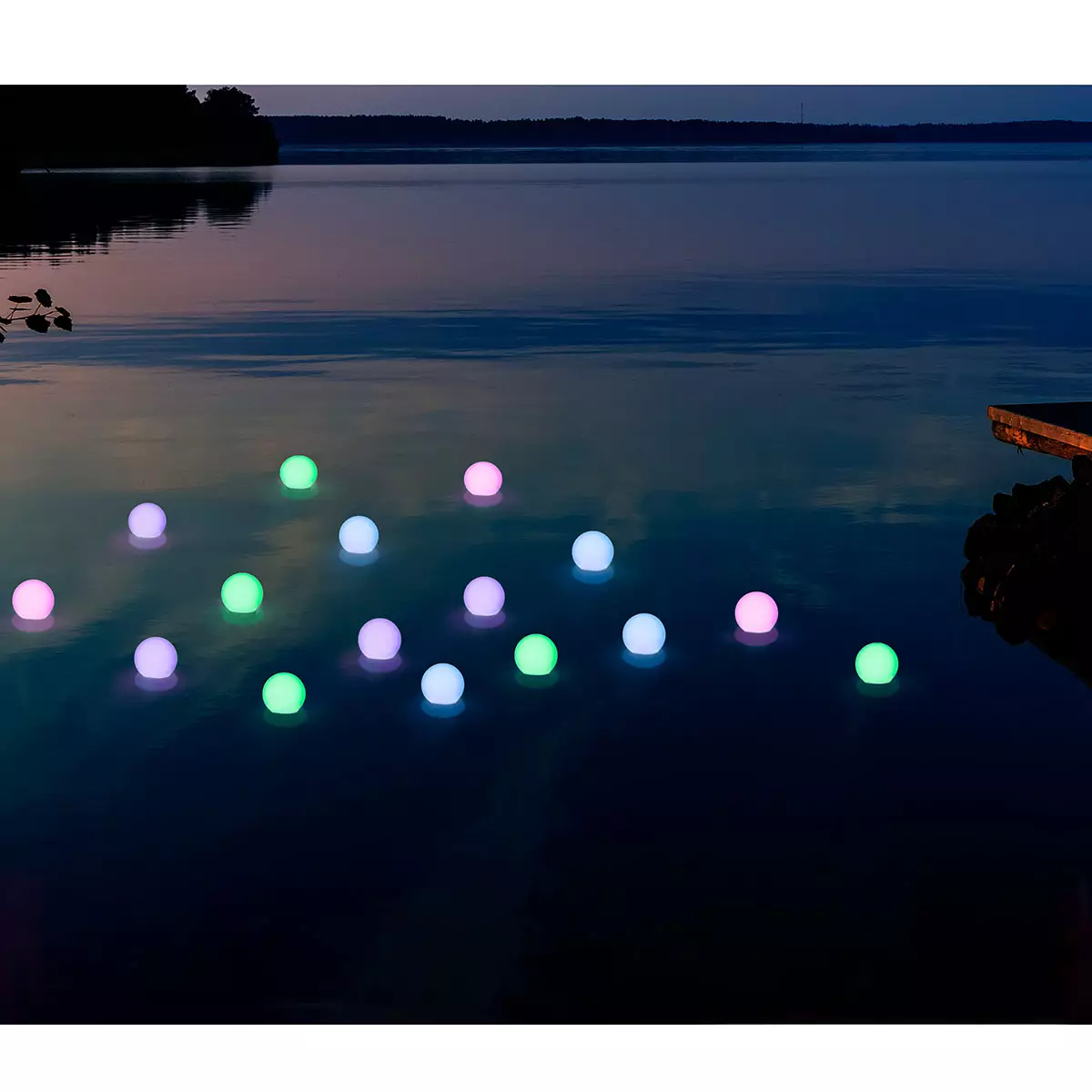 Tyylikäs kelluva valopallo valokoriste on varusteltu vaihtuvilla Led väreillä. Valokoristeen RGB LED väriä vaihtava toiminto luo upean ja värikkään valaistuksen ympärillensä. Yhdistä useampi valokoriste näyttäväksi kokonaisuudeksi pimenevään iltaan. Kelluva valopallo voidaan ankkuroita järven tai meren rantaan aurinkokennovalon mukana tulevalla ankkurilla. Monikäyttöinen kelluva valopallo toimii myös porealtaan tai paljun kloorin levittimenä. Valokoristeen halkaisija on 10,5 cm ja valaisimen korkeus on 18 cm.